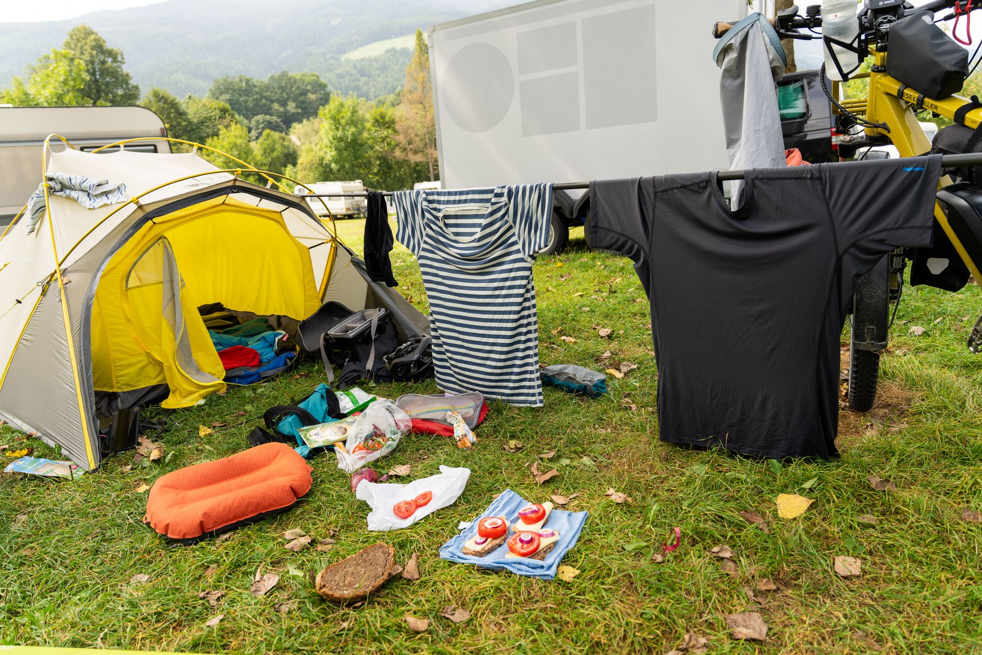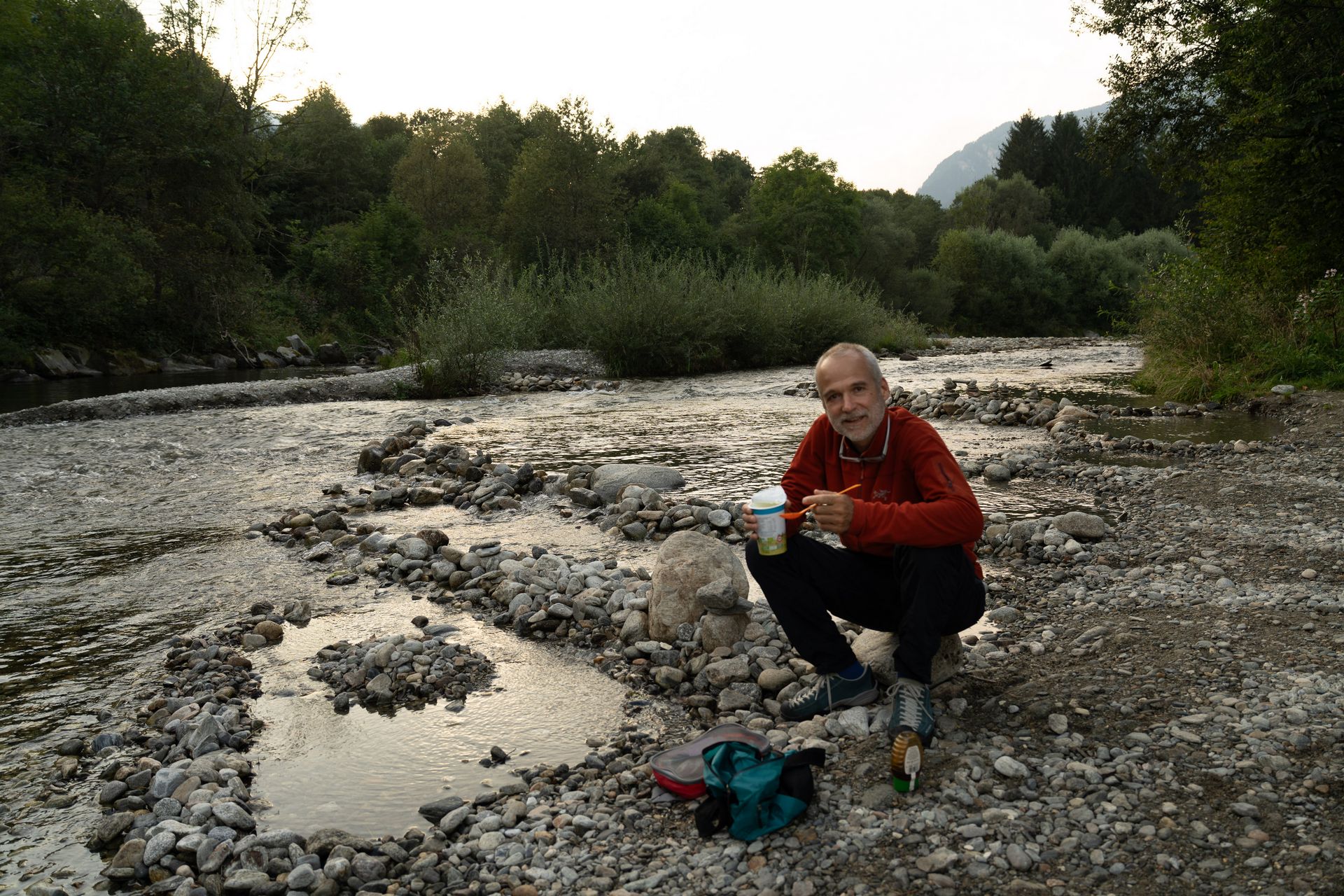 Posso carciare le batterie. Habe ich mir aus diesem Internet zusammengeklaubt. Ja, ich darf. Das Fahrrad kriegt Elektrizität und ich Gnocchi mit Pilzen. Ich habe die ersten beiden Berge geschafft. 1600 HM waren das und zwei Akkus sind fast leer. So wie gestern am Ende der Tour. Wenn ich nochmal 900HM schaffe, kann ich frei Zelten. Nochmal 600 HM gibt es die Marinelli Hütte mit Übernachtungsmöglichkeit. Davor liegt ein Straßenabschnitt, den sowohl Google als auch Komoot als nicht befahrbar deklariert. Ganz normaler Asphalt. Bin gespannt. Dann geht es richtig steil bergauf mit 20%. Falls das grober Schotter ist, muss ich schieben. Hauptsache, ich komme durch. Jetzt krieg ich erstmal Gnocchi.