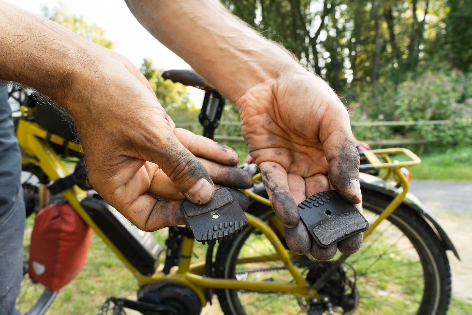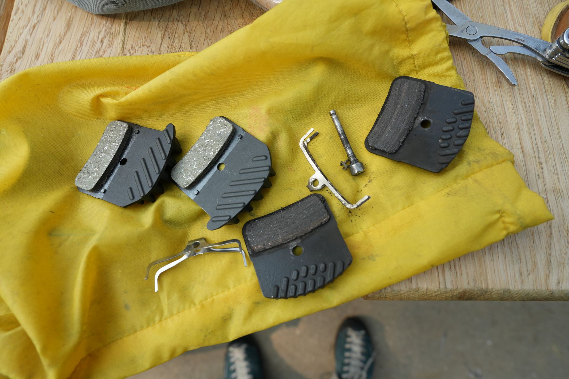 Bei der nächsten Bergabfahrt verabschiedet sich die Hinterradbremse. Die Beläge haben genau 7 Tage gehalten. Vom Erfahrungswert halten neue Beläge mindestens 3 Wochen Urlaub schon aus. Jetzt waren das entweder die vielen nassen Abfahrten, die den hohen Verschleiß erklären, oder wahrscheinlicher habe ich Fake Beläge bekommen. Das war so ein extrem günstiger 4-er Pack. Einmal Ersatzbeläge vom Fachhändler habe ich mit und den baue ich jetzt auch ein. Aber ich muss schon nach einem Fahrradladen schauen, um die Bestände wieder aufzufüllen.