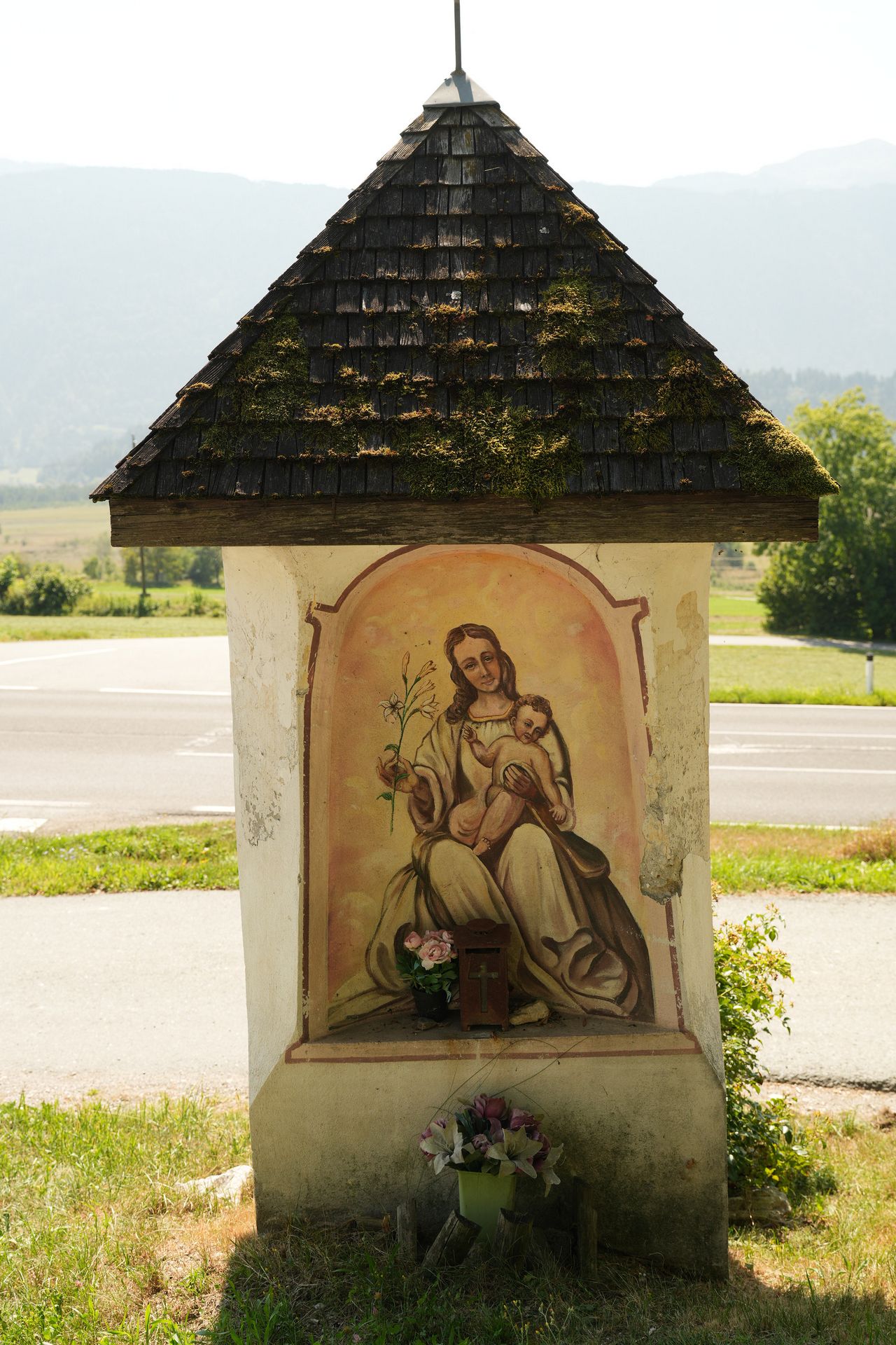 Was mich morgens aus der Daunentüte treibt, ist der Hunger. Ich muss ins Städtchen, weil meine Vorräte nur noch aus den ewigen Nüssen bestehen. Ich könnte mich in ein Café setzen, aber ich hole beste Ware vom Bäcker und verziehe mich auf den Kirchplatz. Dort gibt es einen Brunnen, eine Bank und der nahe gelegene Friedhof spendet Ruhe.