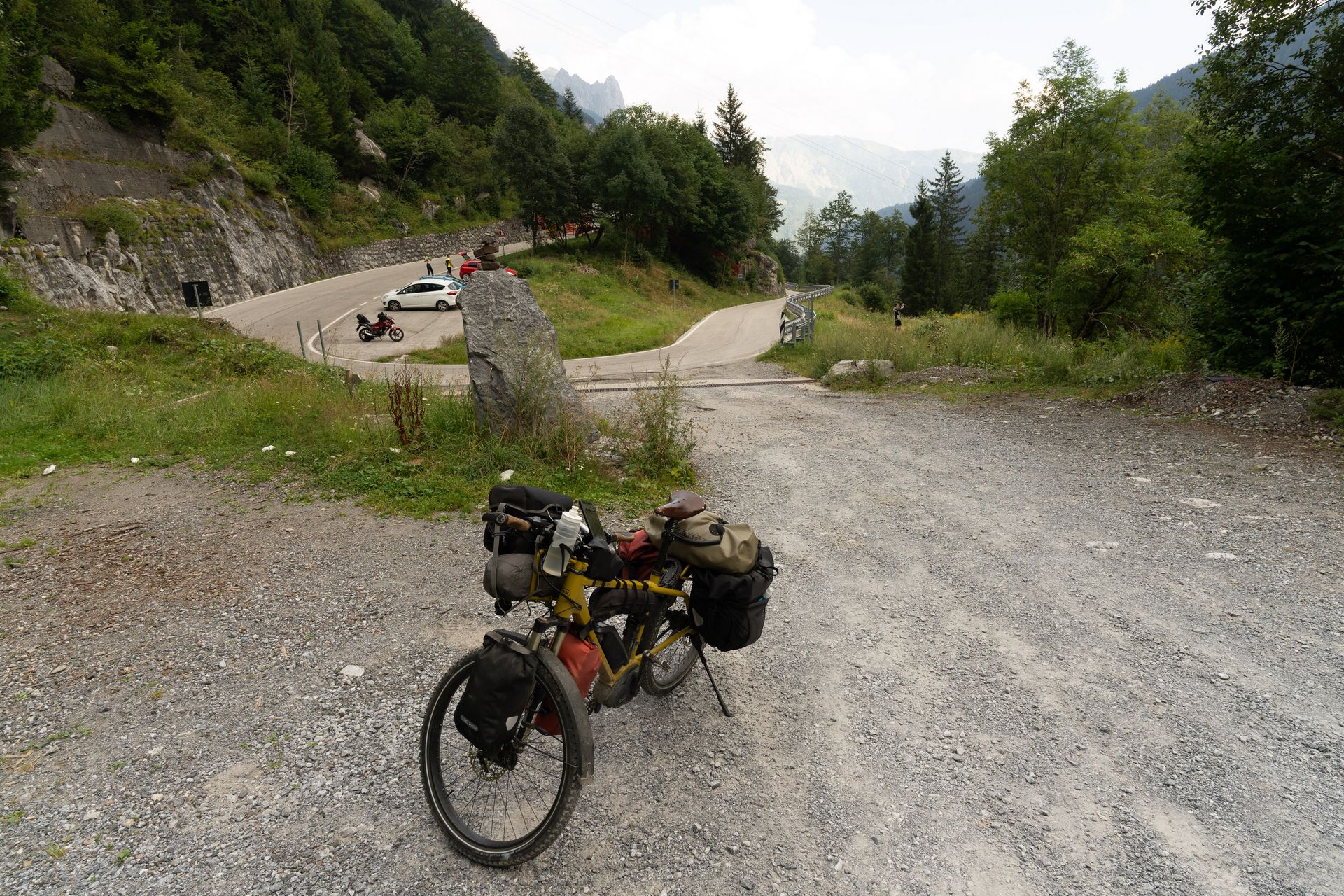 Die nächsten drei Tage werden die schwierigsten werden. Morgen werden es wohl 7 Stunden zu fahren sein statt der üblichen 5. Danach kommt ein Abschnitt von 9 Stunden, wo ich keine Unterkunft gefunden habe. Ich werde vielleicht frei das Zelt aufschlagen müssen und zwischendurch in Cafés die Akkus laden. Vielleicht kommt es aber ganz anders und ich kann die Strecken nicht fahren und muss Umwege finden. Es geht viel auf Schotter durch die italienischen Alpen. Für diese Wege habe ich ganz wenig Information gefunden, ob man mit einem Schwerlastfahrrad durchkommt.