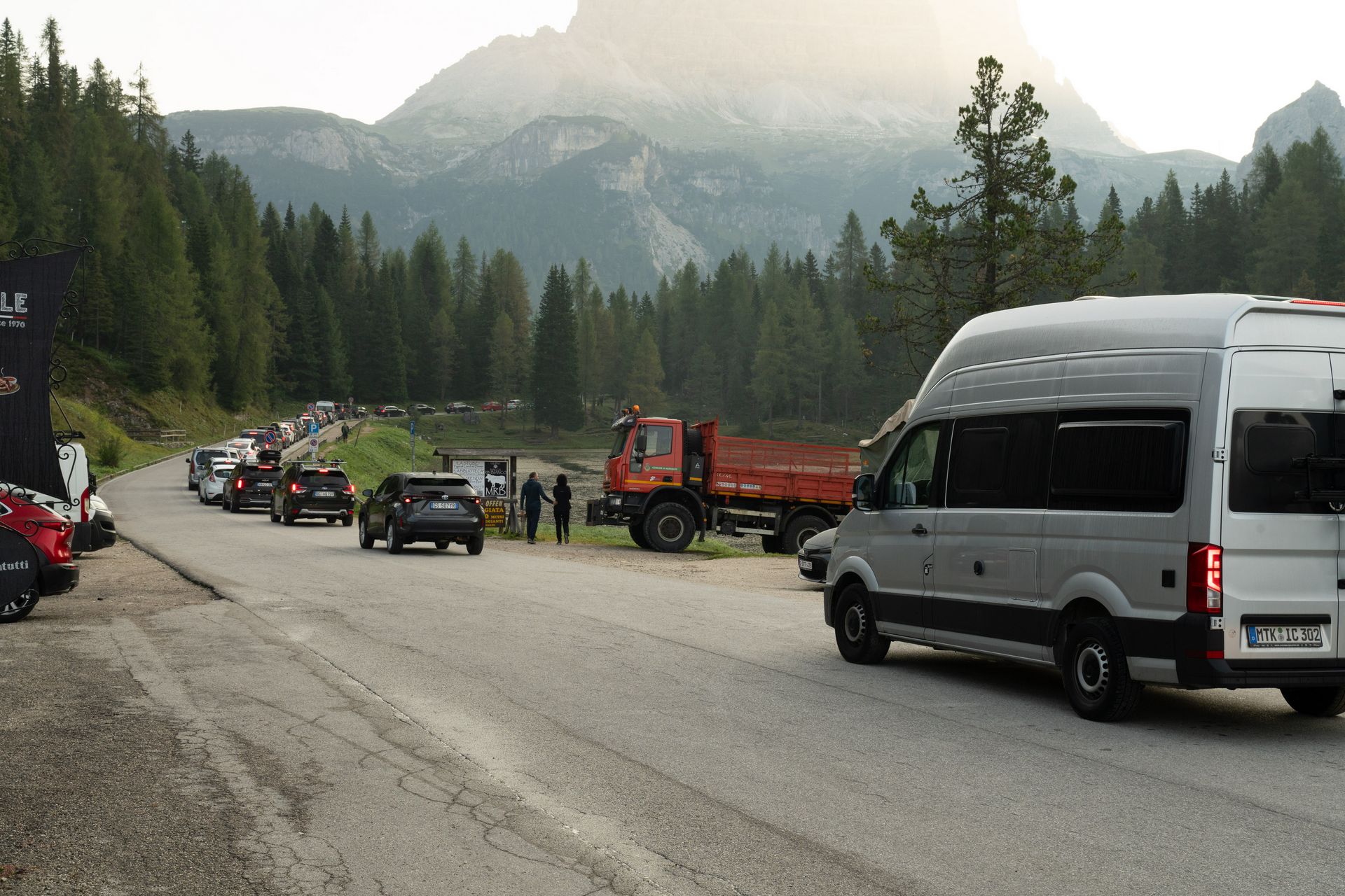 Nach 500m stehe ich im Stau. Als Anhänger der regelbasierten Demokratie bleibe ich einige Sekunden in der Warteschleife. Aber ich will wissen, wer da die Stauführerschaft übernommen hat. Die Autos stehen 1,5 km lang bis zur Mautstelle. Dort wird nur dosiert durchgelassen, weil oben die Parkplätze beschränkt sind. Der Ansturm ist enorm.
