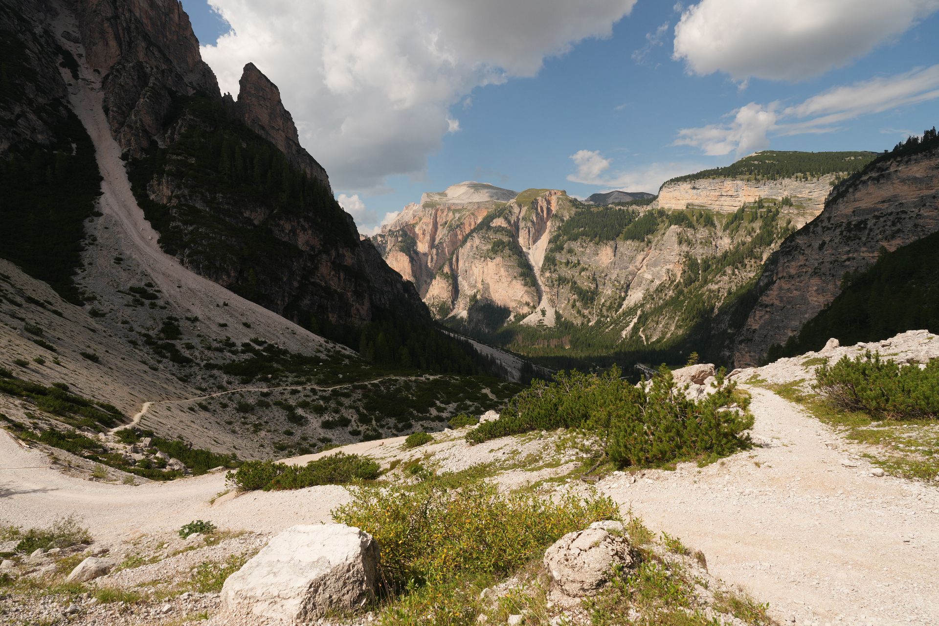Mein Wellnesstag beginnt mittags. Es geht noch 30km immer leicht bergab. Ich bräuchte mal mehr als eine Dusche. Bergab ist alles ok, aber in ein Café hinein wollte ich jetzt nicht. Es geht herunter ins Tal nach Cortina d Ampezzo. Jetzt große Quizfrage: was hat diese 7000 Einwohner Gemeinde mit Paris und Los Angeles zu tun? Charaktermäßig und betontechnisch ist das so wie in Innichen, nur ohne Barockkirchen. Aber den Leuten gefällt's. Da brauch man nicht optimieren.