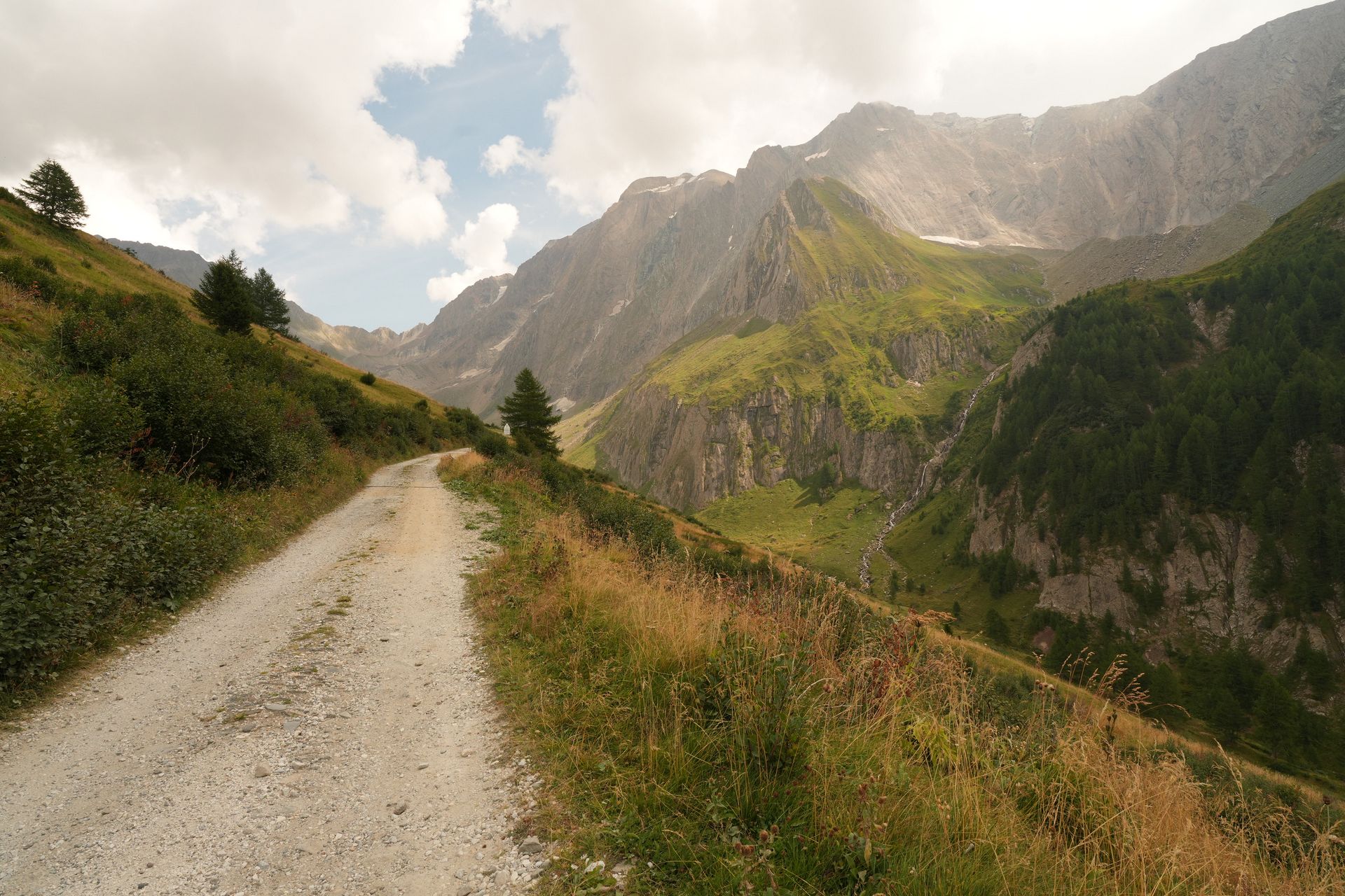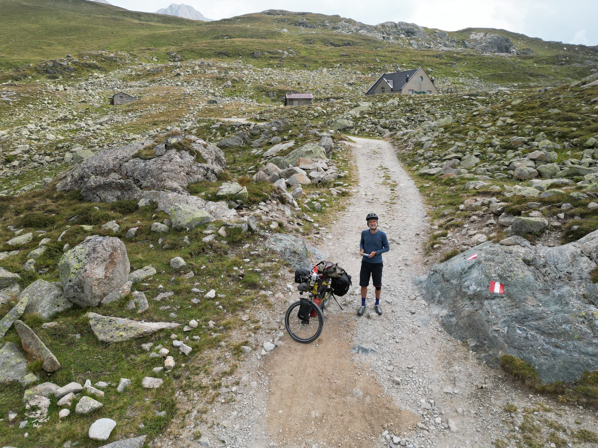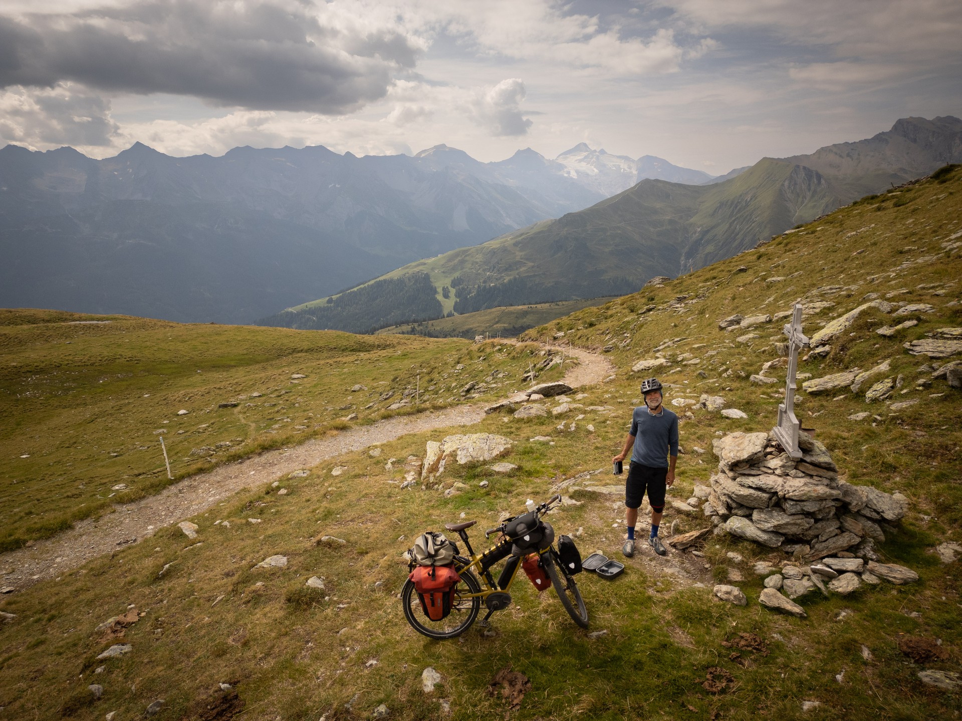 Irgendwas stimmt mit den Akkus nicht. Der erste Akku ist nach 15km leer und der zweite auch, als ich die Hälfte der Höhenmeter geschafft habe. Ich muss laden und finde eine bewirtschaftete Alm. Mit Strudel und Latte Macchiato vertreibe ich mir fast 1,5h. Ich habe den Verdacht, dass eines der beiden Ladegeräte einen Wackler hat. Es ist auf alle Fälle von Vorteil mit 3 Akkus, zwei Ladegeräten und zwei Powerbanks unterwegs zu sein. Irgendwas geht immer kaputt, und dann sollte die Reise nicht zu Ende sein.