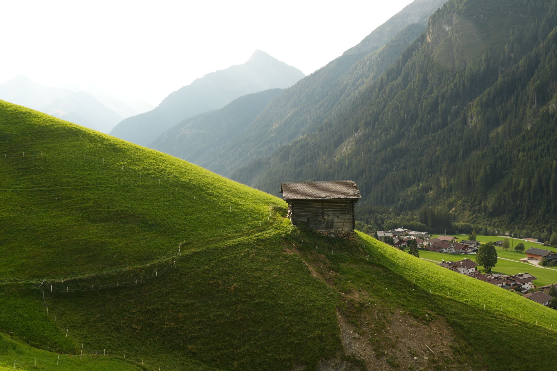 Die Bäuerin erzählt, wie es hier im Winter ist. Von November bis April liegt der Schnee. Die zwei Buben mussten jeden Tag 1h im Bus runter nach Sterzing in die Schule. Momentan arbeiten beide auf dem Hof. Die Hänge hier sind so steil, dass man mit dem Traktor nichts machen kann. Den ganzen Tag stehen sie im steilen Berg und mähen und sammeln das Heu ein. Jetzt ernährt der Hof nur eine Familie und einer der Söhne muss einen anderen Beruf erlernen. Ich habe dann gemutmaßt, dass man hier oben weder ein Fitnessstudio noch Psychotherapie braucht. Mit dem Fitnessdingens hat die Bäuerin mir Recht gegeben.