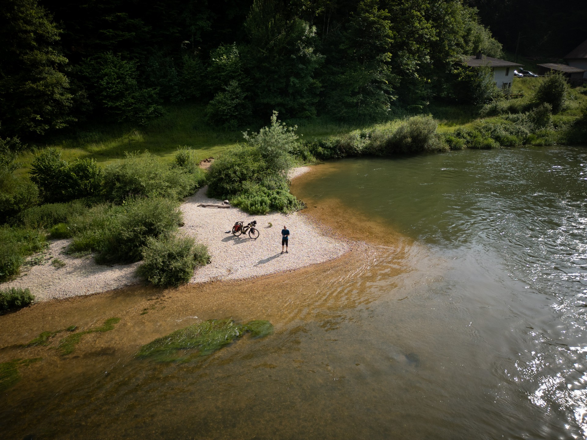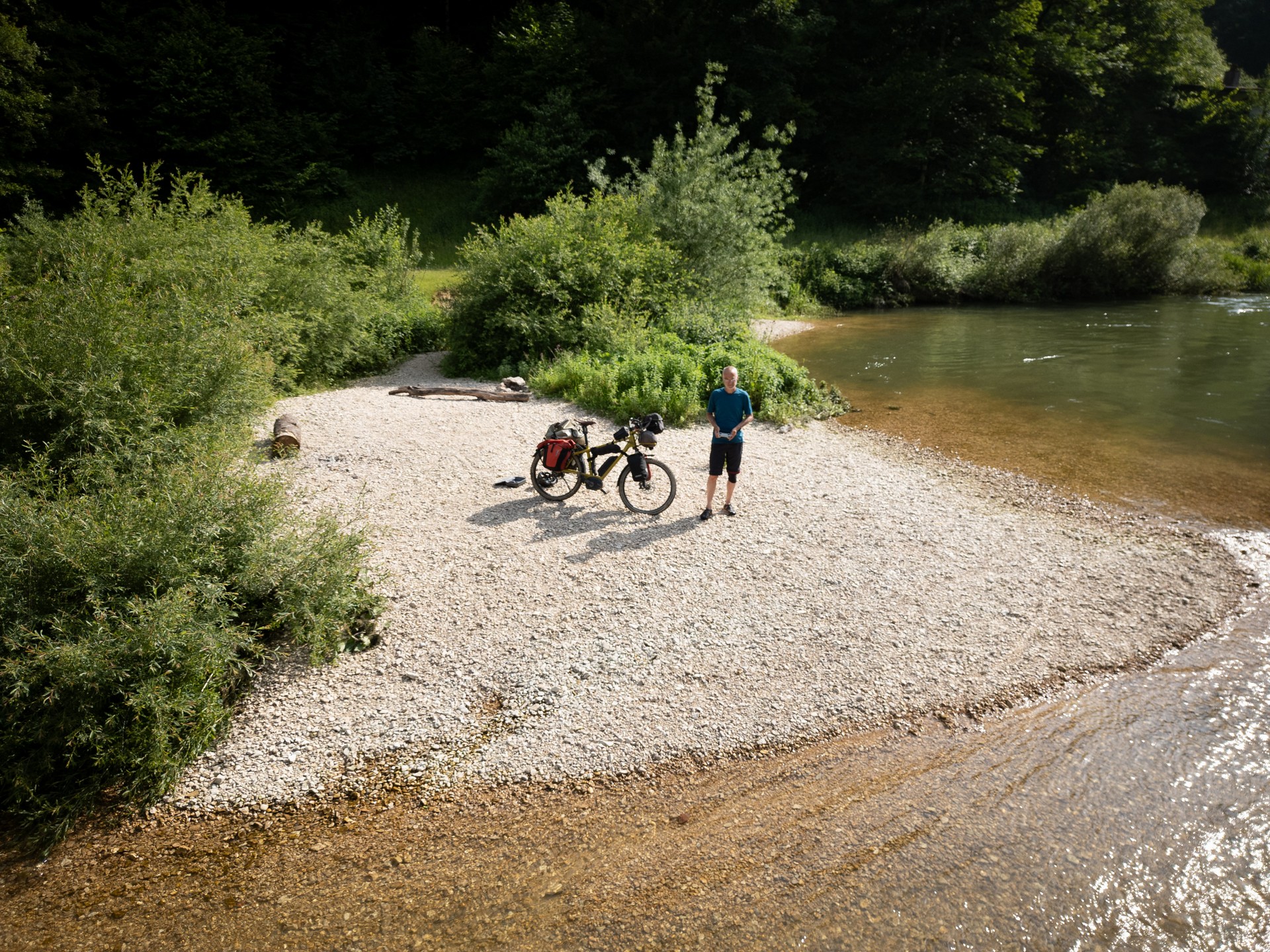 Ich bin auf dem matschigen Uferweg der Doubs angekommen auf meinem Zeltplatz. Der liegt wieder in Frankreich. Die Mitte der Doubs ist die Grenze. Wunderschöne Strecke.