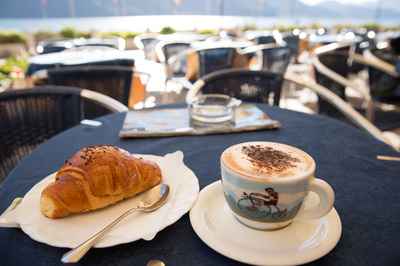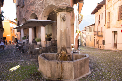 Am Lago dahingleiten ist eine der Kernkompetenzen meiner englischen Schönheit. Überall gibt es kleine Städtchen zum bummeln und Capuccino trinken und gesehen werden. Besonders das erste Städtchen nach der Grenze ist ein italienischer Traum: Cannobio. Hier ist auch noch ein Hafen vor der Flaniermeile und autofrei ist es auch. In einem kleinen Lädchen kaufe ich Obst, Käse und Brot. Ein junger Mann begleitet meinen Einkauf, wählt das Obst und wiegt es und empfiehlt den Käse. Alles kommt mir sehr preiswert vor: der Capuccino mit Croissant für 3 Euro.