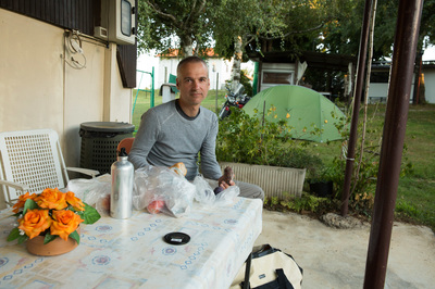 Heute habe ich mein Tagespensum nicht geschafft und hatte riesiges Glück, dass ich kurz vor Dämmerung noch einen Minicamping gefunden habe. Ich bin der einzige Zelter und bekomme den Schlüssel zur Warmdusche. Ansonsten gibt es hier noch ein Plumpsklo und ein Waschbecken.