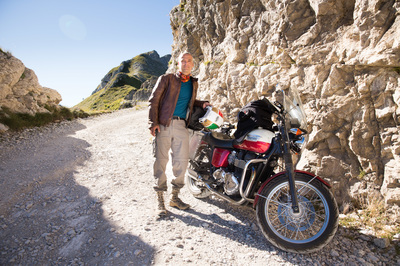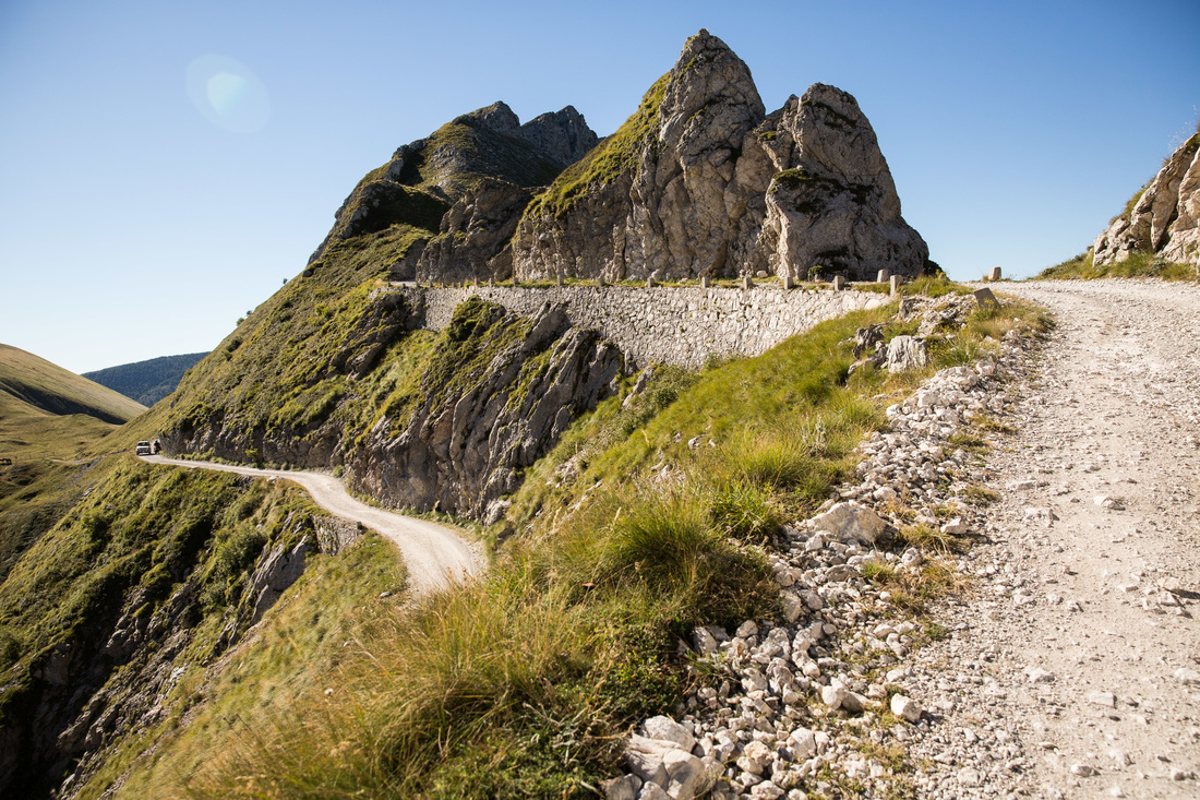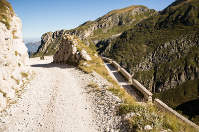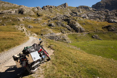 Ich hatte schon Schwierigkeiten, den Einstieg zu finden, obwohl ich einen GPS - Track auf dem Navi hatte. Am Beginn gibt es ein altes Fort und man muss eben mitten durch diese Ruinen fahren. Die Militärstraße geht mitten durch das alte Militärgelände. Und dann stehen 80 km grober Schotter vor einem, wobei ich mich auf den Haupteil mit knapp 50km beschränkt hatte. Es gab keine Stelle, die extrem schwierig gewesen wäre oder wo man nur mit einer Portion Wahnsinn durchbrettern kann. Der Anfang war am kompliziertesten, weil es gleich so steil hoch geht. Die gesamte Strecke bin ich im ersten Gang gefahren und häufig mit schleifender Kupplung. Schon nach dem ersten Kilometer bin ich nassgeschwitzt und es rüttelt alles durch. Ich hab da einfach Hemmungen, mit höherer Geschwindigkeit drüberwegzubrettern.