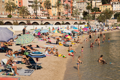 Das ist gestern etwas untergegangen: mare, mare, mare und vive la france. Soviel Zeit muss sein. San Remo, Nizza, Monte Carlo, kennt man. Aber Menton kannte ich nicht vorher. Wie das so ist, hast du mal von etwas gehört, dann kommt es sofort wieder um die Ecken. Im Spiegel stand von dem großen Polizeieinsatz. Jetzt nicht wegen der Flüchtlinge, die hierher von Italien schwimmen um ins gelobte Frankreich zu kommen. Sondern ich erzähl es euch. Menton hat einen kleinen Sandstrand, viel zu klein für alle Sonnenhungrige. Ganz Schlaue gehen dann vor dem Zähneputzen raus und legen ihre Megabadetücher und markieren ihr Reich. Wie der Hund und der Baum. Die sozialistische egalitäre Seele der Franzosen rebelliert und nun muss morgens die Polizei raus, um diese territorialen Besitzstandsmarken zu enfernen. Gleich nach dem Zähneputzen. Mein Badetuch wäre schon vorher von den Müllwerkern mitgenommen worden, da ich im kleinen Rucksack nur das Spültuch vom Müllermarkt dabei habe, mit dem ich morgens das Mottorrad und das Zelt trocken rubbele.