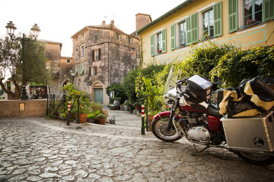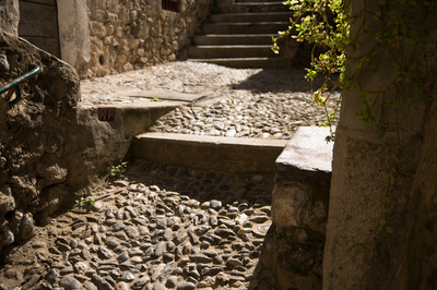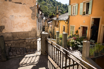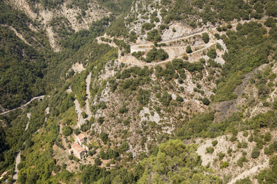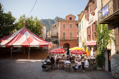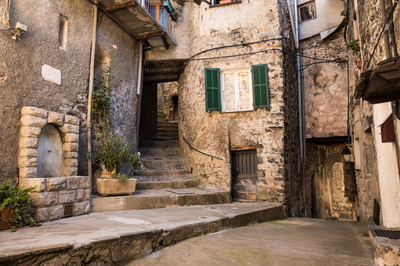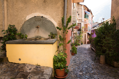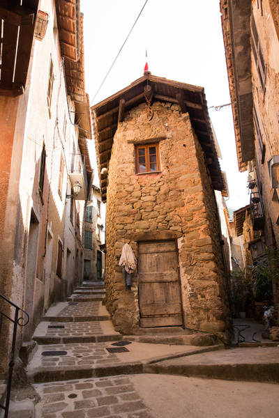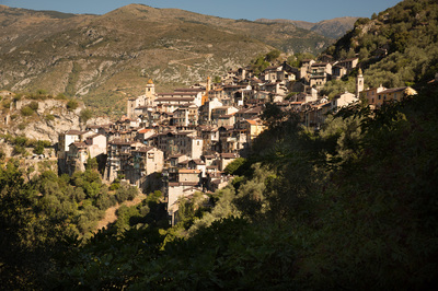 Nach 40 km Kurvenschwingen geht es nach Saorge. Aufgrund der spektakulären Lage im steilen Berg eindeutig Kategorie Felsennest. Die meisten Häuser sind aus dem 19. Jahrhundert. Es ist Leben in den winzigen Gassen. Man findet einen Bäcker und einen Obstladen, kleine Lädchen mit Handgearbeitetem für die Besucher. Endlos kann man die gewundenen Wege erstromern, und landet immer wieder auf dem Platz der Republik oder an der großen Kirche. Capuccino oder Predigt.