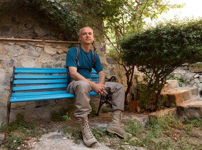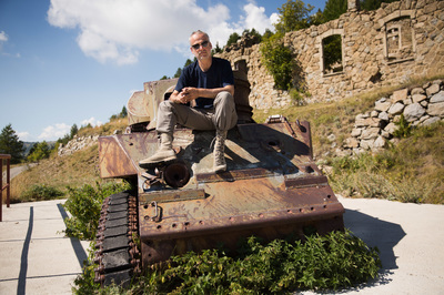 Oben in den Bergen ist die Luft nicht so heiß wie unten am Meer, die Gegend ist touristisch wenig erschlossen. Manchmal fahre ich 30 km ohne auf irgendein Fahrzeug zu treffen. Ein Ziel war heute eine Straße, die mitten in der Alpenlandschaft eine Schleife zieht. Also keine von A nach B Straße, sondern eine AA - Straße. Wahrscheinlich war das auch mal in einem Krieg sinnvoll, im Kreis zu fahren. Vielleicht den AB - Ernstfall mit AA - Taktik üben. Man kann sich so schlecht in diese Kriegsherren hineinversetzen. Jedenfalls habe ich den letzten verbliebenen Panzer friedlich besetzt.