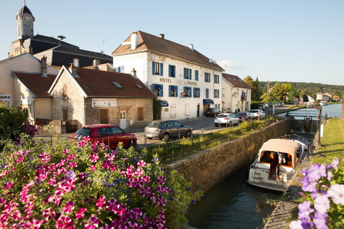 Es ist wieder Strahlewetter mit tiefblauem Himmel, und die Landschaft wird immer flacher. Auch ein bisschen wie daheim. Bevor es dann langweilig wird, erreiche ich meinen auf einer Flussinsel in l isle-sur-le-Doubs gelegen Zeltplatz, mal wieder einer mit Rezeption, warmer Dusche, wlan, Bier. Alle meine Funkbits habe ich verbraucht, Kontakt zur Welt nur noch über Wifi. Morgen gibt es noch eine lange Fahretappe mit 250 km bis in die Vogesen. Davor besichtige ich aber noch eine der berühmtesten Kirchen dieser Welt.