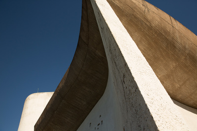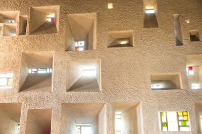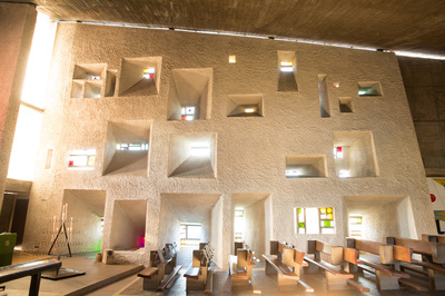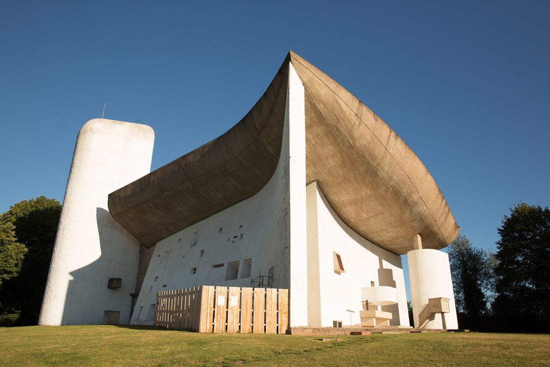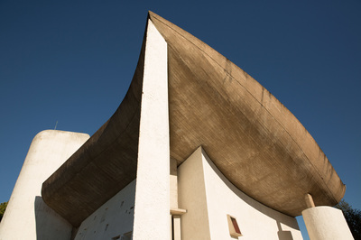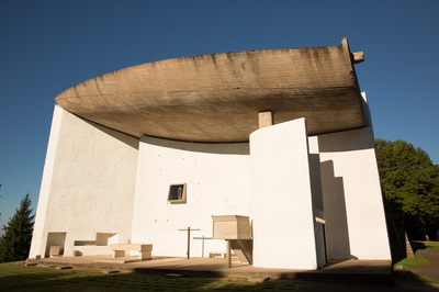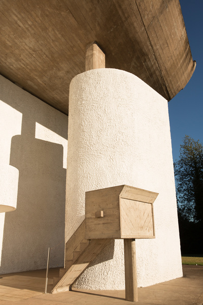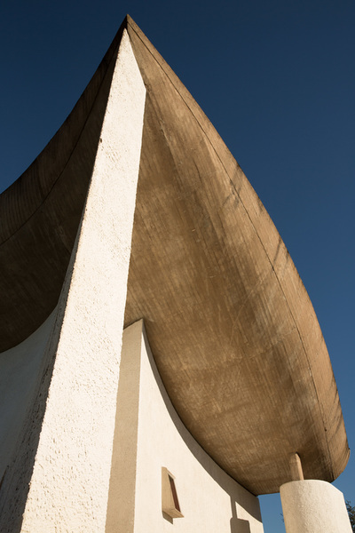 Heute Morgen war zuerst diese Kirche in Ronchamp. Als Kind war ich da schon mal und ich kann mich an ein paar selbst entwickelte Schwarzweißbilder dieser Architektur erinnern. Ich bin zu früh vor Öffnungszeit, und versuche den Eindruck zu vermeiden, wie ein Apple-Jünger ein neues iPhone zu ersteigern. Aber ich bin trotzdem gerne alleine vor der Kirche. Der Herr Corbusier hat nicht nur Sitzmöbel entworfen, sondern auch Immobilien. Weniger diese praktischen Reihenmittelhaushälften, sondern der hat aus Beton Kunst gemacht. Die ganze Kirche scheint nur dazu da zu sein, dieses geschwungene Gebilde oben zuhalten. Es ist aber eine Hohlkonstruktion, und so kannst du beim beten dich auch auf anderes besinnen, als dass du lebend da wieder raus kommst. Andererseits. Wenn du da tatsächlich von diesem Dach erschlagen werden würdest. Das müsste doch der sicherste Weg in den Himmel sein.