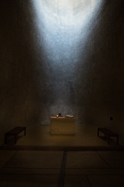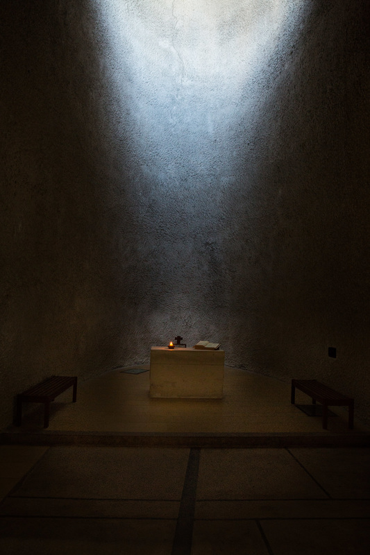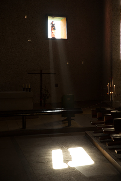 Jetzt ist ein Künstler erst dann einer, wenn er ganz philosophische Sachen sagt zu seinem Schaffen. Nicht so wie es da in diesen Infotafeln stand, dass es halt Beton ist, weil, der ist billig und kann vor Ort geformt werden. Nein, er sagt dann, dass er für die Kirche mit dem Licht Volumen erzeugt hat. Das ist so bedeutungsvoll, dass ich jetzt hier eigentlich eine Pause machen müsste. Aber was glaubt ihr, was meine Fotomodels sagen würden, wenn ich bei denen mit Licht Volumen erzeuge.