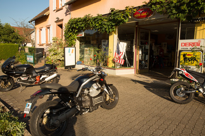 Und dann gibt es da dieses kleine MotoGuzzi-Lädchen mitten in der Provinz. Rührend.
