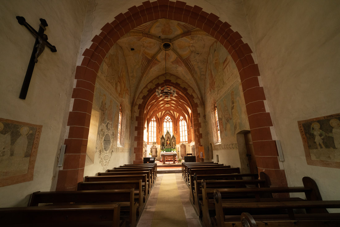 Bei Eberbach geht es vom Neckar ab und steil in den Odenwald hoch. Es sind dunkle Wälder und auf den wenigen Hochflächen pfeift der Wind und bringt einige Regentropfen. Die Burgruine Wildenberg liegt auf meinem Weg. Zuerst habe ich etwas Bedenken, mit dem Fahrrad in das alte Gemäuer hinein zu fahren. Ich bin phasenweise tendenziell schon immer auch ein bisschen schüchtern. Da aber kein Handlanger staatlicher Autorität irgendwie vorhanden ist, traue ich mich am Ende noch, mein Flugspielzeug in die Luft zu lassen, um einen Blick von oben zu erhaschen.