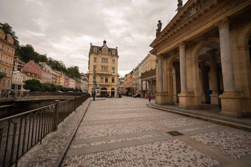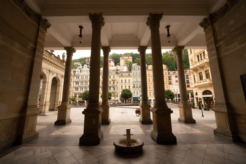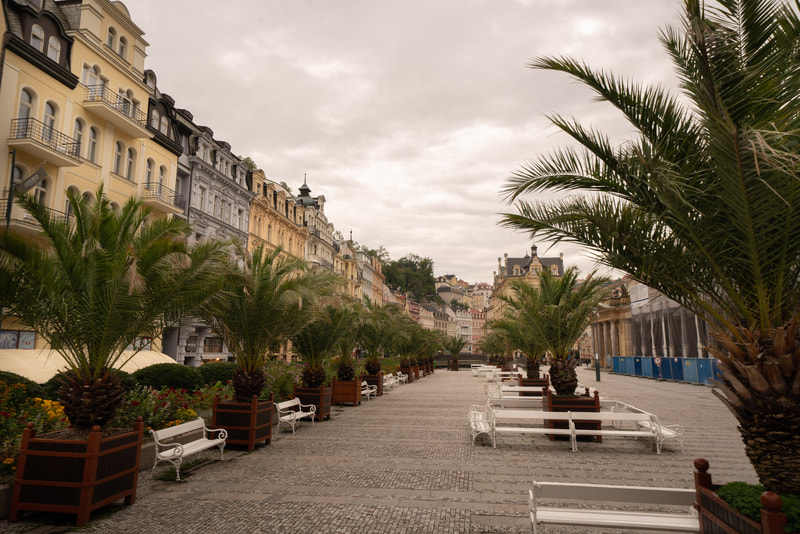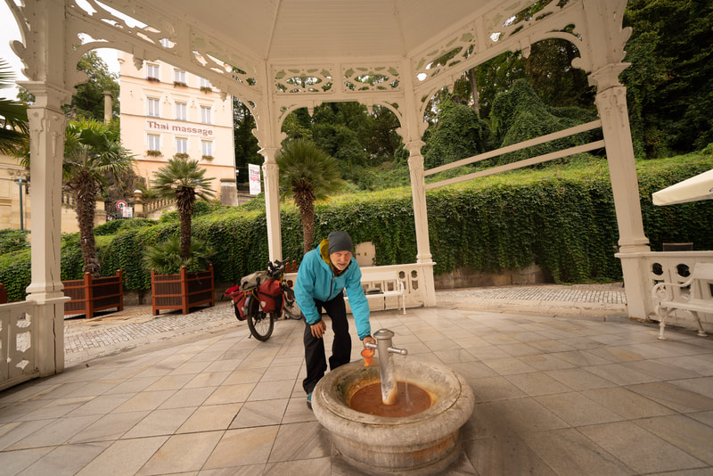 Karlsbad. Was soll ich schönes berichten? Es schlängelt sich durch ein tiefes Tal, und überall gibt es diese alten Fassaden. Die Hauptsehenswürdigkeiten wie die berühmten Kolonaden sind eingerüstet. Ok, das Städtchen kann nichts dafür, dass die Wolken dumpf und träge von oben herunterhängen. Vor allem aber habe ich Hunger. Es gibt hier 17 Shops für überteuerte italienische Taschen zum halben Preis, aber keinen Lebensmittelladen oder Bäcker. Was mich aber schon etwas geweckt hat, sind diese dampfenden Brunnen. Aus Heilthermen kommt es heiß und sehr salzig. Die Leute kommen mit so speziellen Porzellan-Schnabeltassen. Damit kann man schon fürs Alter üben. Karl der IV hat sich hier pflegen lassen. Wenn ihr diesen Karl nicht kennt, Männer die sich pflegen lassen, da hat man aber schon eine Meinung davon. Ist eher Hartz der IV.