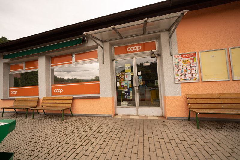 Es geht weiter an der Eger entlang. Wenn ihr es genau wissen wollt: von Karlovy Vary, über Radošovice, Velichov, Okounov nach Jirkov. Zu eurer groben Orientierung. Tschechische Provinz. Sieht ziemlich fertig aus, es bröckelt im Gebälk. Die einst bestimmt stattlichen Dörfer verfallen so vor sich hin. Aber vielleicht ist das auch nur mein verwöhnter Wessiblick. Hübsche schlammige Pfade am Flüsschen, ein Stück neben der Autobahn, dann wieder endlos große Braunkohlehalden. An dem einsamen Coop wäre ich fast vorbei geradelt. Kein Licht, erstmal niemand da. Aber es ist offen, dafür gibt es wenig. Ich bestelle 250g gekochten Schinken für 1,00 Euro.