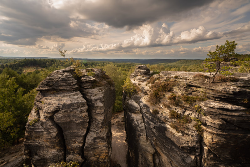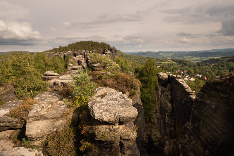 Das Elbsandsteingebirge gibt es auch auf der Tschechischen Seite. Und da will ich heute hin. Nach 35km entlang von Braunkohletagebau geht es hoch in die Berge nach Tisa. Davor ist so ein letzter Coop, da muss ich hamstern bis morgen Abend. Tisa ist die tschechische Seite des Erzgebirges und da gibt es diese Sandsteinkunstwerke.