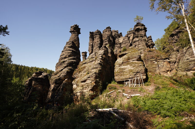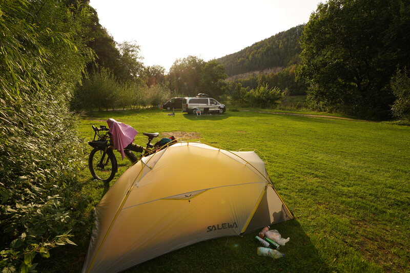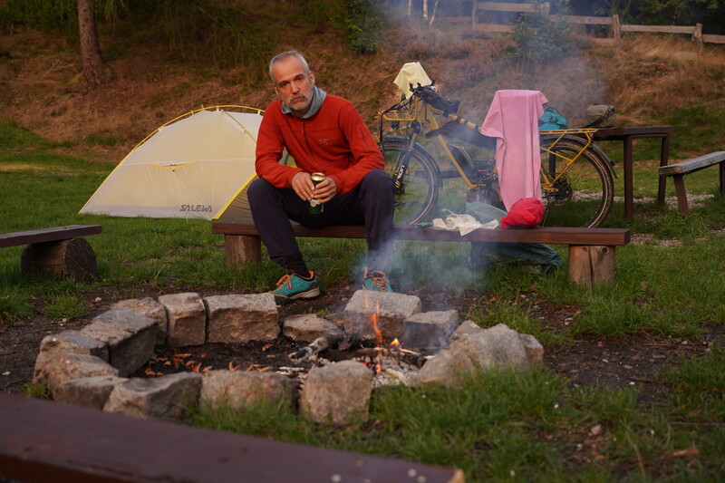 Also Elbsandsteingebirge. Für die wo es nicht wissen: das sind so Sandsteintürme, die aus der Landschaft heraus nach oben ragen. Ich bin im tschechischen Tisa auf einem Zeltplatz, direkt am Fuß dieser urtümlichen Monster. Ich bin ganz allein auf dem Platz, darf mein Fahrrad etwas putzen und die Kette ölen, mein Flugzeug direkt auf dem Gelände fliegen lassen und heute Abend sogar Feuer machen. Ob ich das hinbekomme. Nachdem ich mit kaltem Wasser gestern nur die Katzen gewaschen habe, ist es eben heute Zeit für das Vollwaschprogramm.