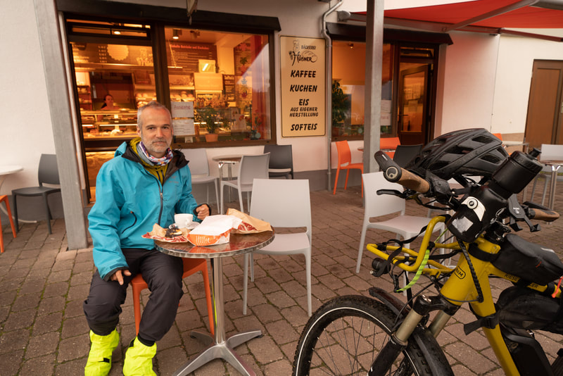 Drei Kilometer vor Etappenende stehe ich vor einer Pension und bin am Hadern. Es regnet ständig und ich könnte mir ein warmes Bett gönnen. Andererseits. Es geht ums Prinzip. Ich meine, wenn das einreist. Mache ich dann nächstes Jahr Wellnessurlaub im Eventhotel? Zusammen mit meinem Über-Ich und dem Schweinehund beraten wir uns. Es geht ja jetzt nur um diese eine Nacht. Leider reicht es meinerseits nicht für ein Machtwort. Ganz im demokratischen Geiste sollte ich wenigstens die Richtlinienkompetenz haben, offensichtlich aber nicht einmal beratende Funktion, da die anderen beiden nicht mehr meinen Ausführungen zuhören. Ich verstehe, wir fahren weiter. Der Zeltplatz ist ein Bauernhof. Im Hofladen gibt's Käse, Tomaten, Schinken und eine Übernachtung. Der Platz ist perfekt. Es gibt einen Gemeinschaftsraum mit Küche und Gesellschaft. Ich lasse mich eben auch mal überzeugen und kann dann auch nachgeben.
