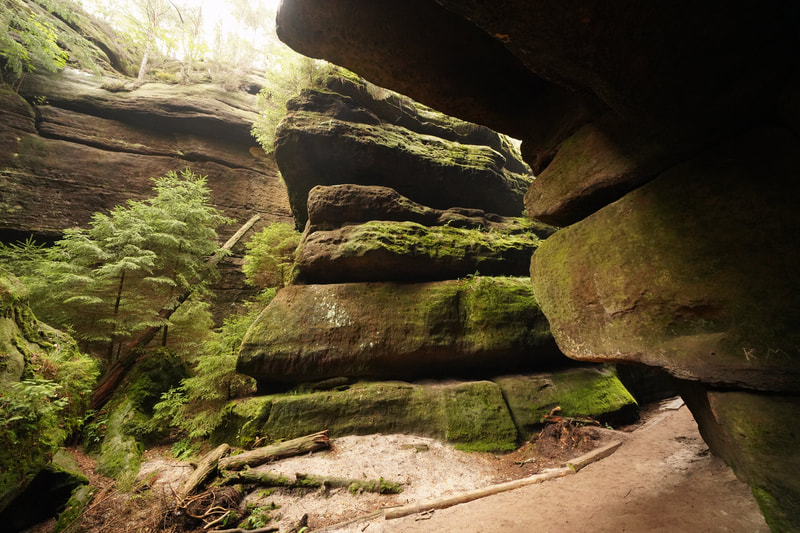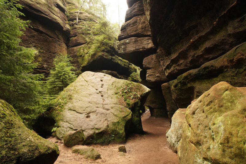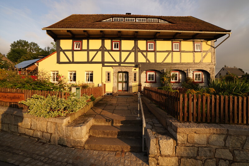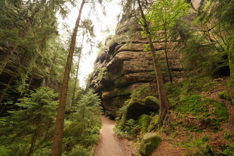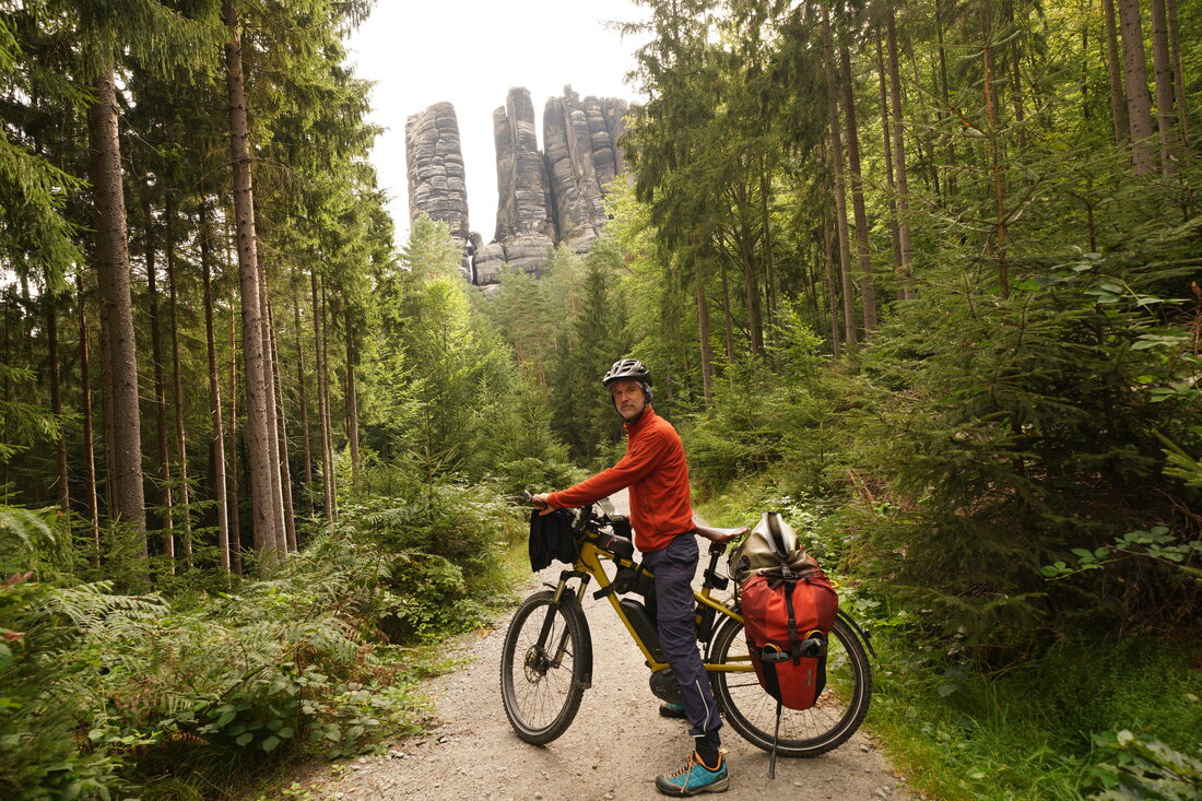 Es geht ostwärts ins Kirnitzschtztal. Da es unten im Tal aber nur die große Straße gibt, auf der man radeln kann, geht es den Berg hoch. Am oberen Ende des Tals ist die Kirnitzsch ein wildes Flüsschen, das man vor einigen 100 Jahren auf einem 700 m Abschnitt aufgestaut hat, um Holtz Stämme leichter transportieren zu können. Das will ich mir heute anschauen. Es geht auch wieder einige Kilometer durch Tschechien, weil die Grenzlinie eben etwas kurvig verläuft. Mein Zeltplatz liegt dann auf einem Bauernhof in der Lausitz.