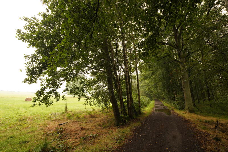 Und natürlich verfolgt mich der Regen. Da ist es für einen Moment etwas heller, entledige ich mich der Gummipelle, und kurz darauf fängt es wieder zu schütten an. Ich hatte gestern meine Wäsche auf eine Leine gehängt. Die ist jetzt wohl nasser als zu Beginn. Ich werde auf dem Campingplatz fragen, ob sie einen Trockner haben. Sonst habe ich ein Problem, denn für morgen ist wieder Regen angekündigt.