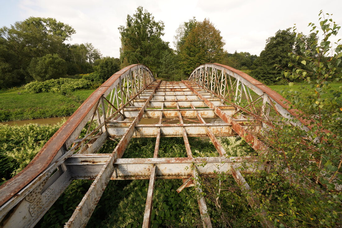 Das Navi hat Lust an Experimenten. Aus den ungewohnten Straßenschildern schließe ich, dass ich durch Polen fahre. Parallel zur Neiße geht eine kaum befahrene Schnellstraße. Auf der einen Seite sehe ich über dem Grenzfluss Deutschland, auf der anderen wollen Stacheldraht und Flatterband den Blick auf den Braunkohletagebau verhindern. In einem Industriegebiet will mich das Navi über eine Eisenbahnbrücke zurückführen. Ich bin aber kein Zug und entdecke auf dem Smartphone eine Fußgängerbrücke. Es geht auf struppigem Pfad durchs Unterholz. Die Brücke ist aber so demoliert, dass ich da nicht herüberkomme. Also 35km polnische Grauzone bis Görlitz, oder 15km zurück. Zurück. Das wird ein langer Tag.