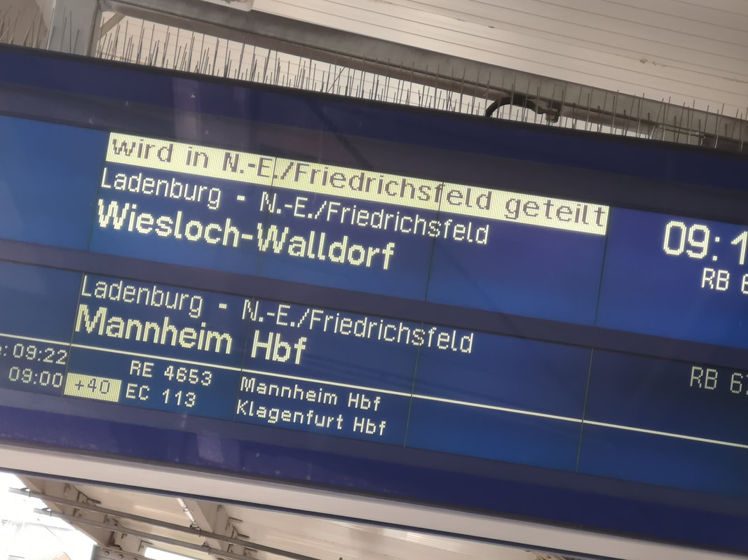 Jetzt darfst du beim Zugfahren nicht zu spät kommen. Und ich will ja überhaupt nicht zu spät kommen. NIE. Wecker klingelt um sechs in der Früh und zwei Minuten später das Smartphone, quasi Versicherung. Der Fernzug fährt ab Weinheim um 9:00, dem Zubringer aus Heidelberg traue ich nicht und radele die 20km in den Norden. Und stehe natürlich eine Stunde zu früh am Bahnhof. Das denke ich zu dem Zeitpunkt, am Ende warte ich drei Stunden, bis tatsächlich der EC113 aus Frankfurt ankommt. Und kurz darauf kommt die Durchsage, dass der Zug wie vorgesehen 17:00 Uhr ankommt, aber nicht in Klagenfurt sondern in Salzburg. Ja mei, soll auch schön sein. Feierabend ist Feierabend. Ich habe doch alles geplant und gebucht, bin akkurat durchgetaktet. In Salzburg wird dann aber noch ein Züglein aufs Gleis gewuchtet und es geht weiter, wir sitzen alle auf dem Fußboden zwischen den Rädern im überfüllten Zug. Klagenfurt erreiche ich in der Dämmerung und ich muss noch 15km fahren zum Zeltplatz. Also, wenn ihr mal echten Abenteuerurlaub plant, dann traveling with Deutsche Bahn. Es war aber wirklich eine nette Zugfahrt, hatte keinen Moment mal Zeit in meiner Süddeutschen zu lesen, sondern war beim powerplappern mit dem ganzen jungen Volk, das noch unelektrifiziert und voller Ideale in den Süden strebt.