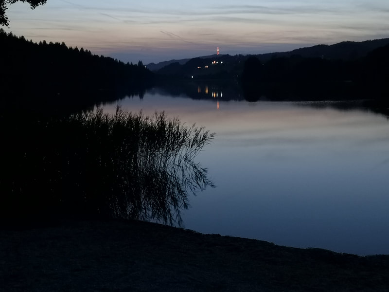 Bled kennt ihr. Zumindest dieses Foto von der Kirche, die mitten auf dem Bleder See steht. Der Campingplatz ist direkt am Ufer. An der Rezeption werden die Ankömmlinge abgewiesen, alles ausgebucht. Da bin ich natürlich der King mit meiner Voranmeldung und bekomme ein echtes Filetstück. Ich wollte eigentlich am Abend auf den Aussichtsberg kraxeln, aber zum einen grollt der Donner, und dann habe ich da noch eine Riesenblase am Fuß von der Schlepperei.