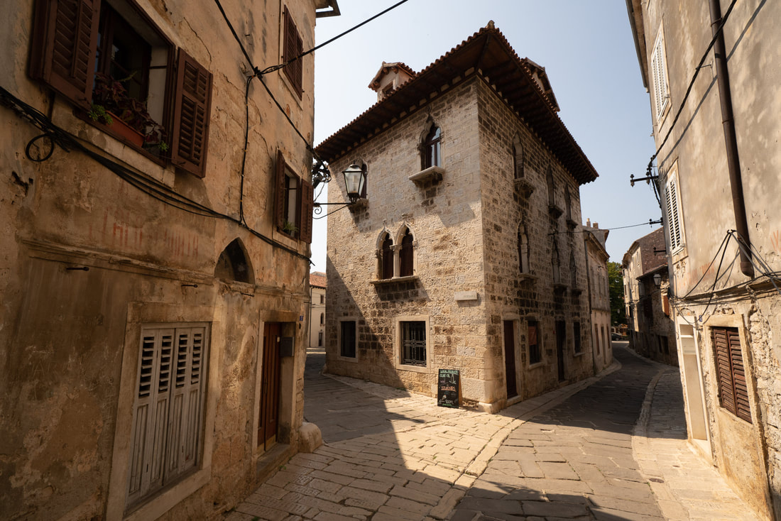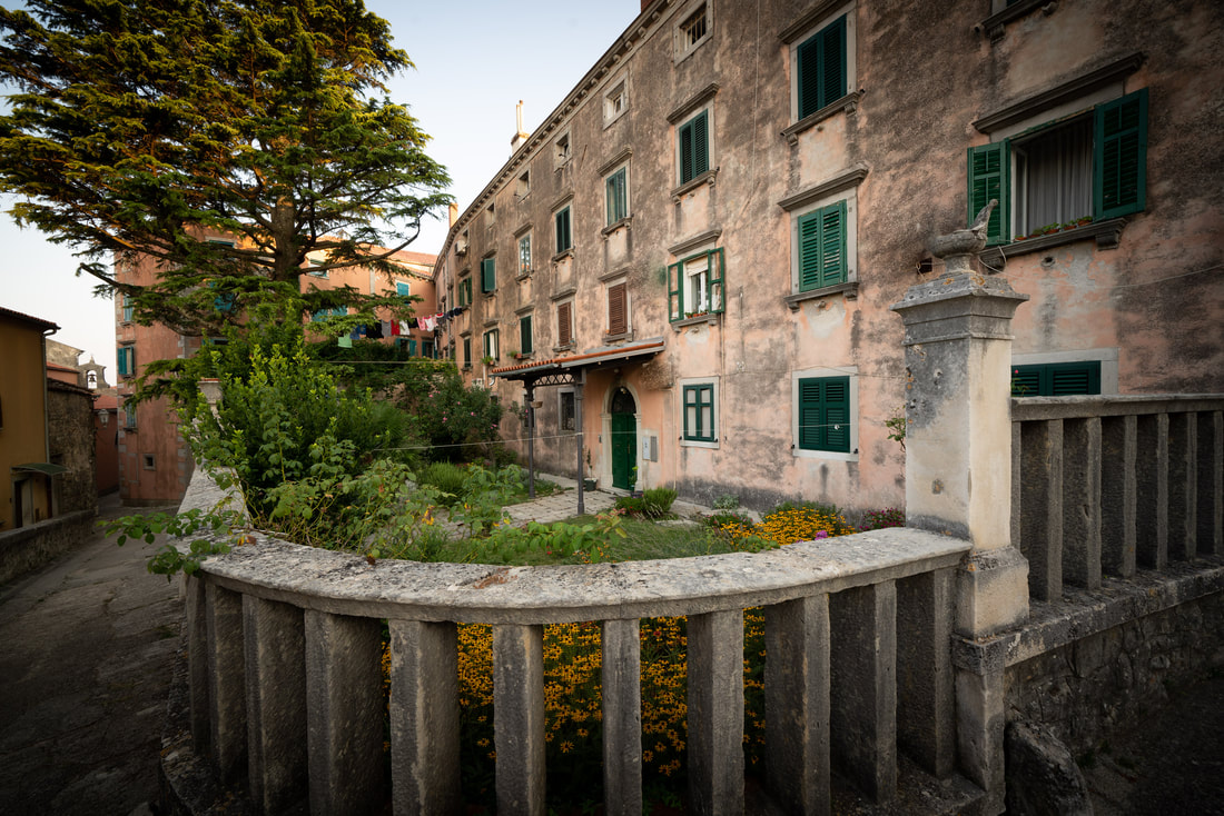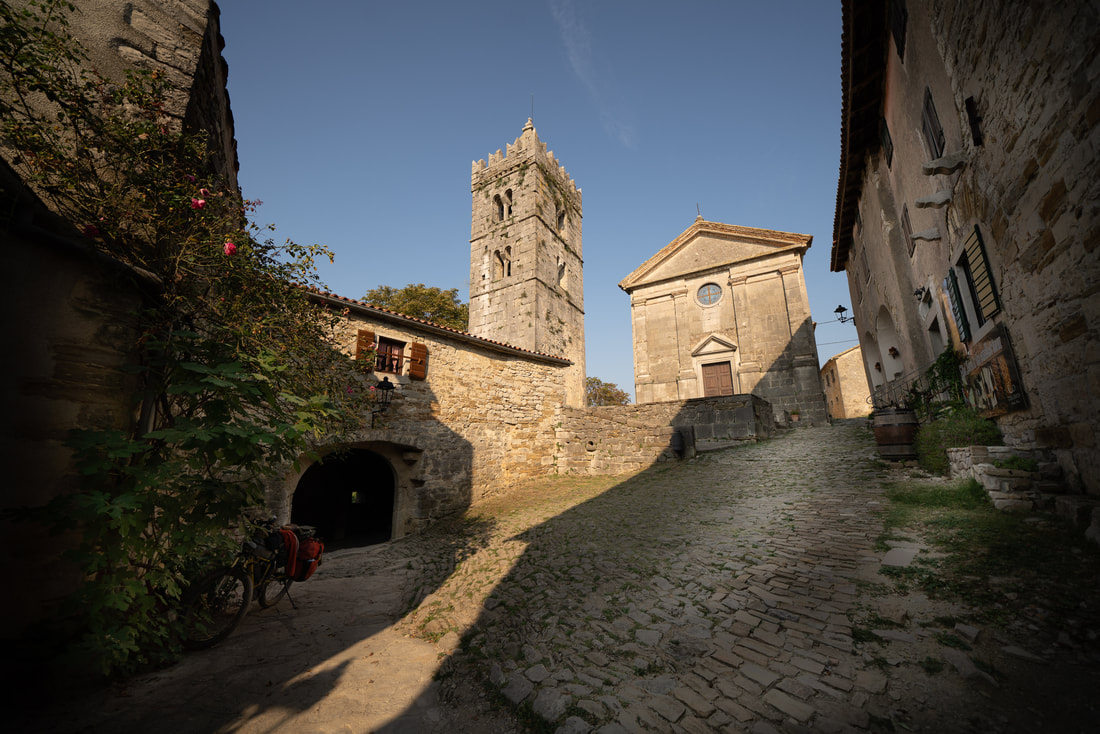 Um wieder zurück zur Planerfüllung zu kommen, radle ich mit den ersten Sonnenstrahlen nach Labin. Wunderschöne alte Gemäuer und verwinkelte Gassen. Ein Palacio nach dem anderen. Das ist das Italien, das einem so idealmäßig vorschwebt und es ist sehr verwunderlich, dass man hier nicht italienisch spricht.