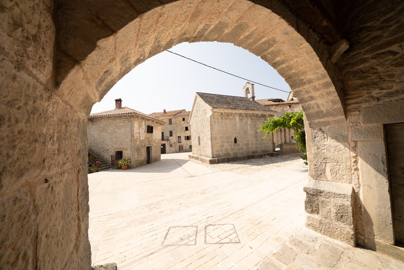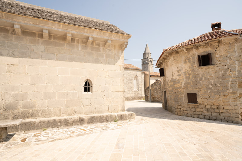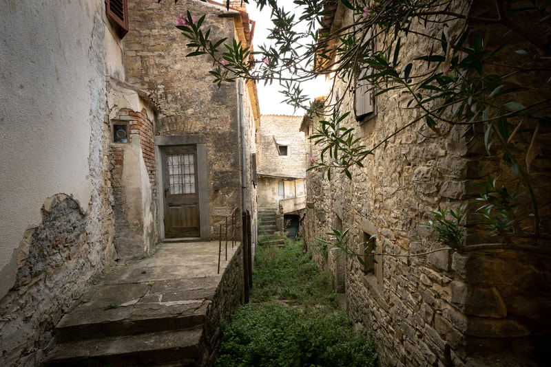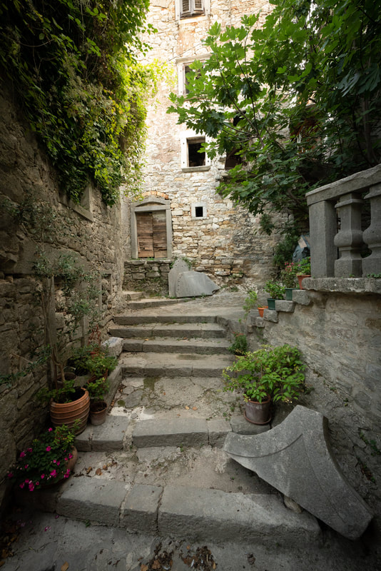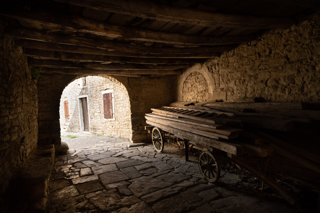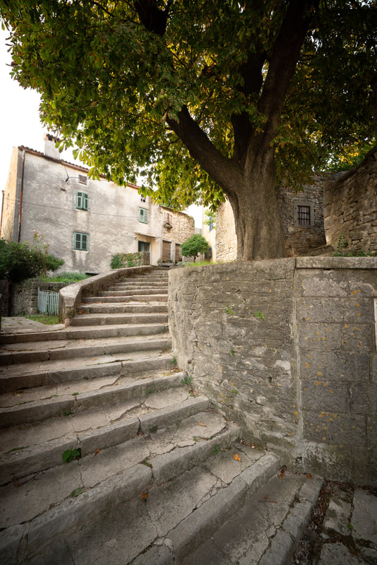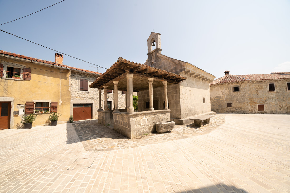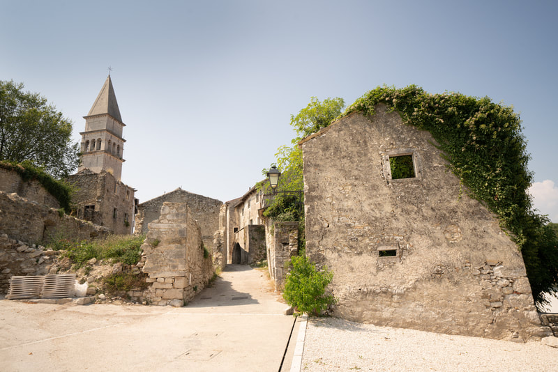Wunderschöne Orte liegen an meinen Rumpelpfaden. Steinerne Zeugen vergangener Zeiten warten ungeschminkt entspannt auf ihren Verfall. Draguc, Gračišće und Pićan heißen die Dörfer. Die letzten 20 Km verlaufen durch ein Flusstal auf einer flachen Schotterstrecke. Kein Haus, kein Mensch, kein Schatten. Echt eindrucksvoll. Nur das Flüsschen, das Tal, der Schotter.