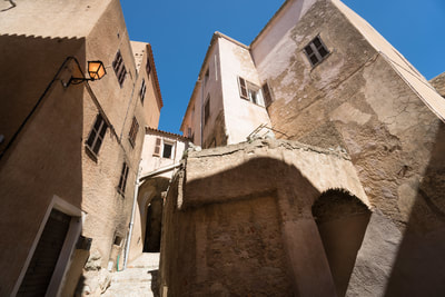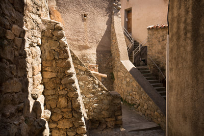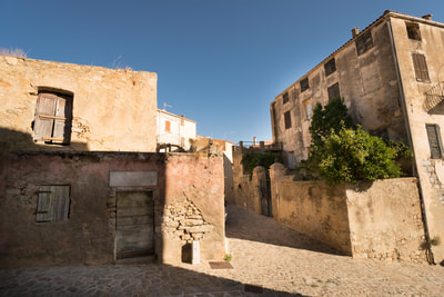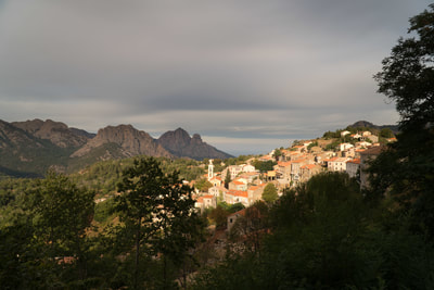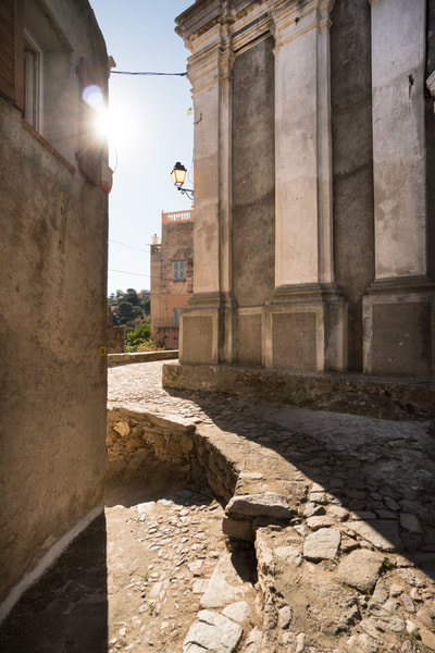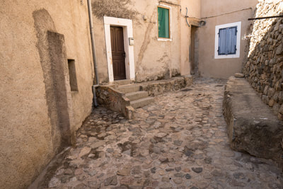 Schon morgens um 10:00 Uhr habe ich mein drittes Dörfchen abgeknipst. Hier ist die Landschaft nicht so schroff, sieht nach Vorgarten von Korsika aus. Die Dörfer sind Kunstwerke der Verwinkelung, falls es so etwas gibt. Lavatoggio, Muro, Avapaesa. Das alte Kopfsteinpflaster und die engen Gassen lassen die Autos nicht hinein. Auf Tourismus ist hier niemand eingestellt, es gibt auch keine Cafés. Die Häuser sind aber großenteils bewohnt und überall wurschtelt einjeder vor sich hin. Blumengießen, Baguette herumtragen, den Staub vor der Tür zum Nachbarn kehren. Jeder wünscht freundlich dem anderen einen guten Tag.