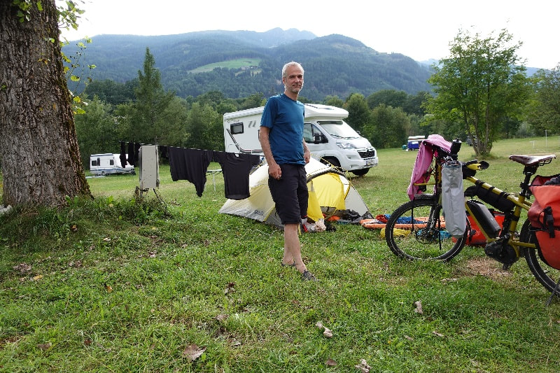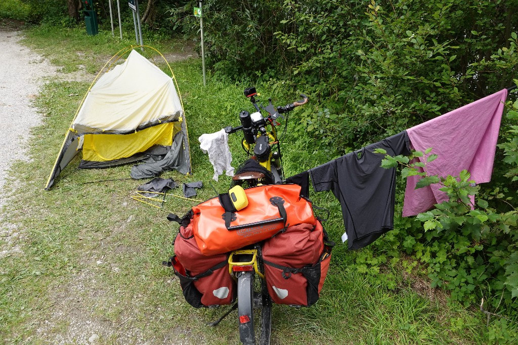 Im Ennstal angekommen gibt es beschauliche und flache Kilometer. Gestern ist meine späte Handwäsche nicht trocken geworden und auch das Zelt habe ich triefend nass eingepackt, und so brauche ich dringend zwei Stunden Sonne. Die kommt auf Bestellung und es ist das erste Mal auch über 20 Grad. Es geht Richtung Tauernhauptkamm. Dort oben kann ich nicht zelten. Ich habe auf einer Alm mit Schlafsaal reserviert. Bin sehr gespannt.