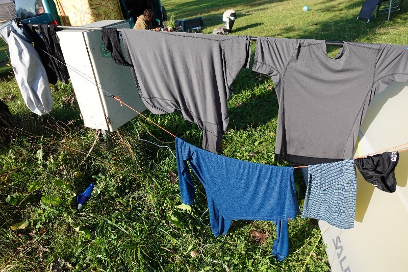 Campen ist Religion, wie auch vegane Ernährung, Pfälzer Weinkultur und Bodyworkout. Alles mit aufsteigenden Tendenzen. Motorradfahren, Schalke04 und Katholizismus eher Downhill. Beim Campen gibt es wieder einzelne Sekten, die sich sehr ausdrücklich vom Mainstream Camper unterscheiden. Da gibt es den VW-Bus Fahrer. Wie im Wilden Westen bauen Sie Wagenburgen, um in inneren Zirkel Bibelgespräche über Vorzelte, Wagenheizungen und Dieselmotoren zu führen. Wenn nun aber keine Gleichgesinnten vorhanden sind, bleibt der Missionarsgedanke. So erfahre ich alles über die Unterschiede von T5 zu T6, die integrierten Gartenstühle und dass man keinen Bus ohne Rückkamera kaufen soll. Ich bin nun im Abwägen und entscheide mich für den Abwasch. Löffel und Messer brauchen eine Grundreinigung.