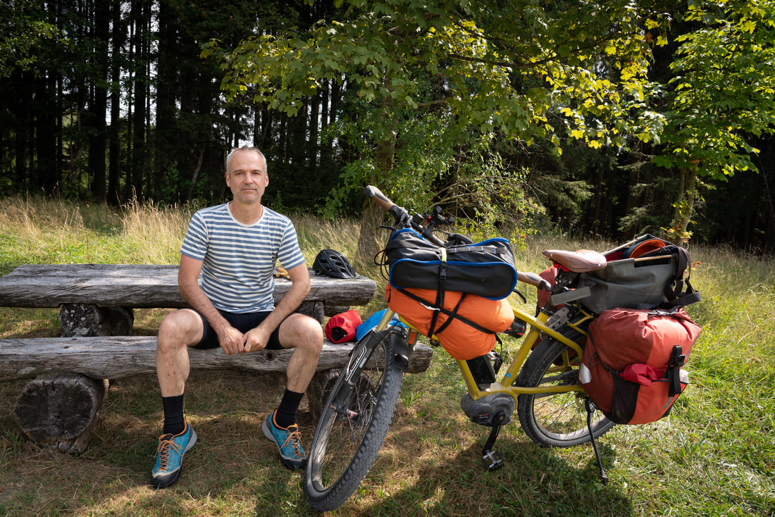 Morgens um 7:00 bin ich abflugbereit und bin so stolz darauf. Und dann muss ich mich ärgern. Weil ich nicht der erste bin. Eine radelnde Familie ist mir voraus und wird schnell mit höchster Elektrounterstützung überholt. So kleine Erfolge können meinen ganzen Tag machen.
