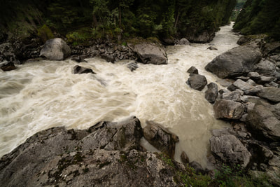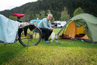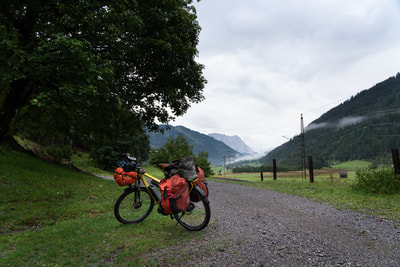 Ein schweres Gewitter hat die Nacht über an meinem Zelt gezerrt und die Wiese in eine Seenlandschaft verwandelt. Vor mir liegt der Fernpass und ich bin gespannt, wie Angela das hinkriegt. Es gibt eine Mountainbikestrecke komplett ohne diese Schnellstraße und ich würde gerne wissen, ob mein curryfarbener Schwerlasttransporter da durch kommt.