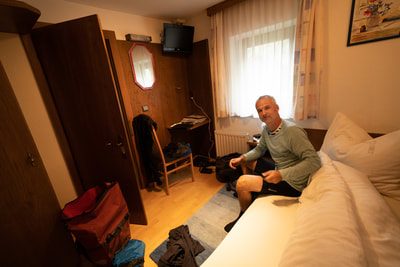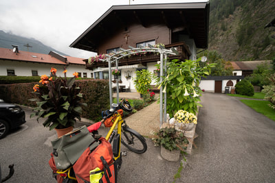 Es nieselt sich ein bei 11 Grad und ich suche nach etwas Wärme und Apfelstrudel. Auch so ein Klischee, dass ich durch intensive Recherche bestätigen kann: extrem lecker. Jetzt bin ich noch ein paar Kilometer vor dem Zeltplatz und beschließe große Planänderung. Ich suche ein Fremdenzimmer, weil das hier so heißen tut. Nichts mit B&B oder Appartement. Und dafür brauchst du keine Smartphone-App oder ein Touribüro. Du mußt einfach nur in den Ort und nach den kleinen grünen Schildern für Zimmer suchen. Beim ersten ist keiner da, der nächste ausgebucht, aber Hilda hat noch ein Zimmerchen. Das ist preiswert wie vor 40 Jahren und kostet in DM ganze 28Euro, und das Frühstück ist auch dabei.