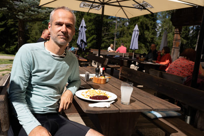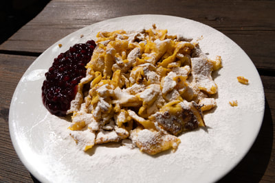 Der zweite Tag in Meran und auch der soll nicht so anstrengend werden. Es geht auf die Pfandleralm, zuerst 20 km im Flusstal und dann knackig 1000 m in die Höhe. Wieder so eine Klischeebombe und ich habe sie für euch getestet: der Kaiserschmarren. Ist extrem lecker. Das liegt aber auch an dem Belohnungsprinzip, dass man eben die Höhe radeln muss für den Puderzucker. So eine Alm ist schon eine feine Sache und hier haben sie es ausgesprochen gut gemacht mit Selbstbedienung und frisch gemachten Gerichten. Und es auch nicht einmal teurer als es hier in Meran wäre. Man müßte mal e-bike-Weitwanderwege von Alm zu Alm entwickeln. Hier oben stehen ausschließlich diese Fahrräder mit Unterstützung, im Tal sind die normalen Räder noch deutlich in der Mehrzahl.