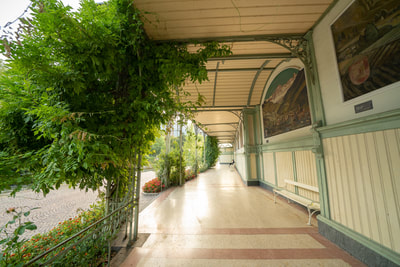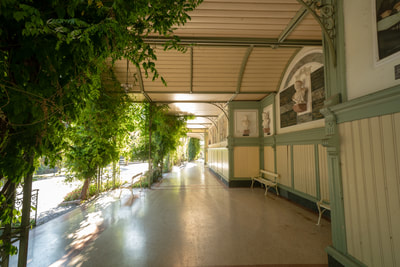 Die Wandelhalle hat es mir besonders angetan mit ihrer schmiedeiseneren Komstruktion. Man könnte hier wunder bar einen Film drehen um 1900. Vor 100 Jahren mussten hier die Kurgäste antreten und frische Molke drinken und jetzt kommts: sie durften nicht sitzen, sondern sie mußten wandeln. Deswegen Wandelhalle. Glaubt es, laßt es oder googelt es. Ich habe recht!