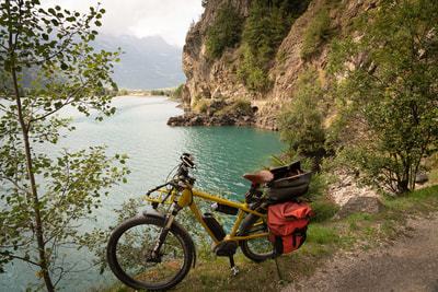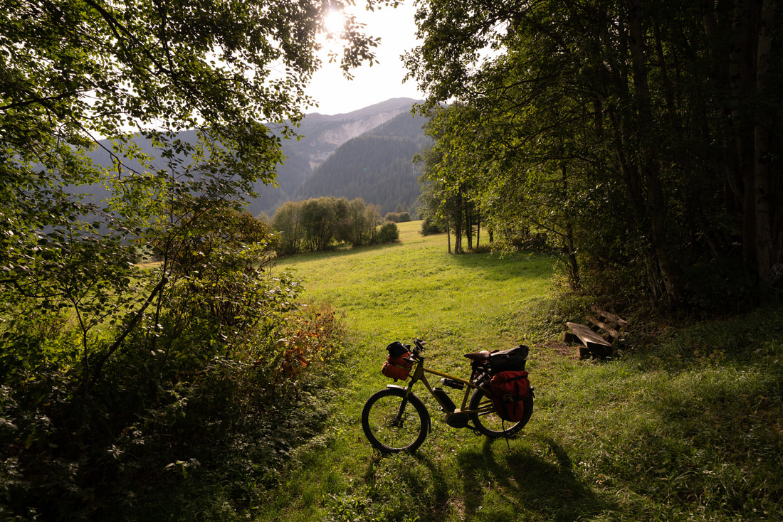 Die letzten Kilometer haben es in sich. Ich muss noch mal auf 2300 m hochkraxeln, und kurz vor knapp kommt eine Schotter-Serpentinenstrecke mit gefühlten 25% Steigung. Die letzten 100 Höhenmeter muss ich drei Mal laufen. 2mal mit Gepäck und dann das Rad auf dem Rücken. Heute wird es fast schon dunkel, bis ich auf dem Campingplatz in Poschiavo ankomme.